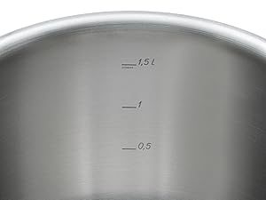 - Bộ nồi nấu có nắp kim loại, bộ nồi bằng thép không gỉ Cromargan đánh bóng, không tráng phủ, thang đo bên trong