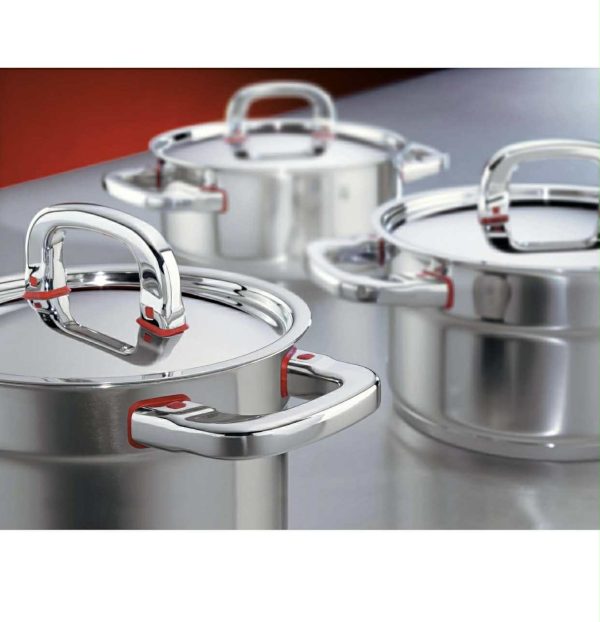 - Có thể nhận biết bằng các chấm đỏ tươi trên tay cầm: Công nghệ Cool+ của WMF giúp giảm sự truyền nhiệt từ nồi sang tay cầm