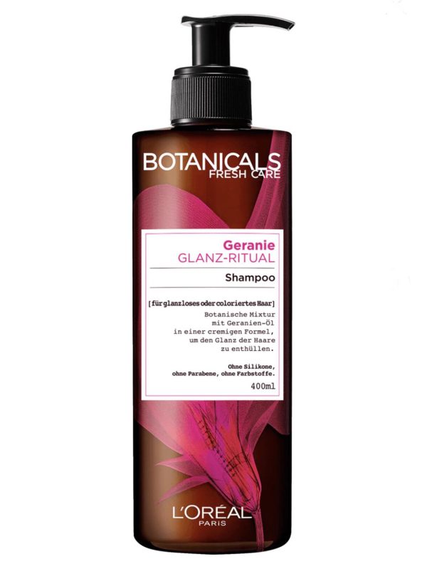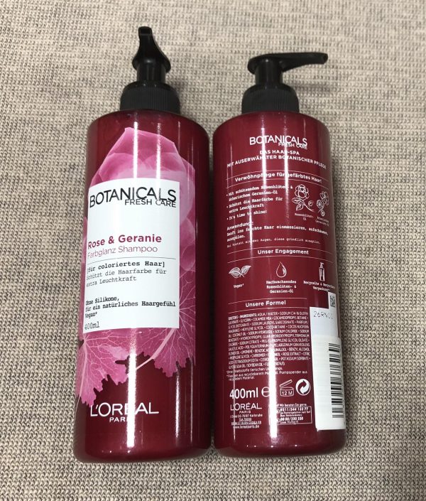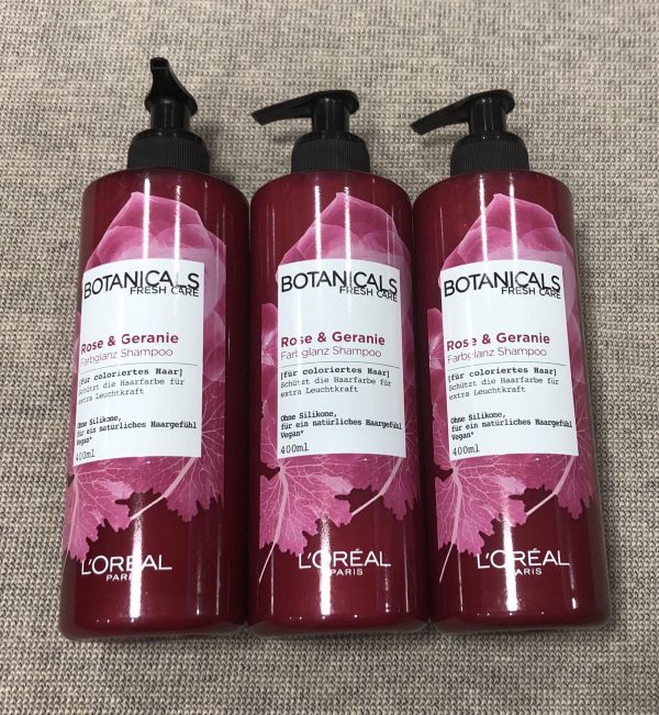•  Botans Rose & Geranium của L’Oréal Paris là một loại dầu gội bóng màu bổ dưỡng cho tóc màu và xỉn màu: công thức cải tiến kết hợp phức hợp hoạt chất Botanicals đặc biệt , với tinh chất tinh khiết của hoa phong lữ và dầu hoa hồng để cung cấp cho màu tóc sự bảo vệ tối ưu và màu xỉn màu , giúp cho tóc có độ sáng độc đáo.