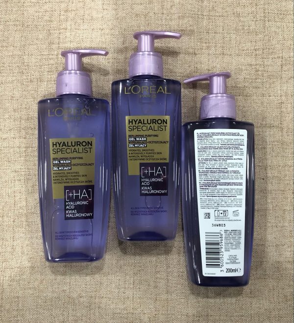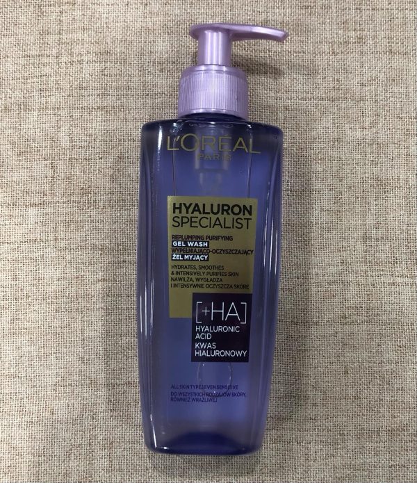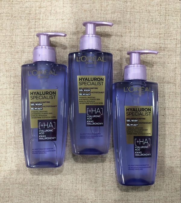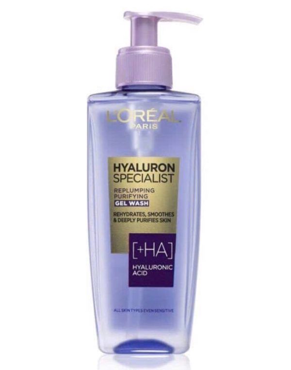 - L’Oreal Paris Hyaluron Specialist Replumbing Purifying Gel Wash, gel rửa mặt làm đầy và thanh lọc, dưỡng ẩm, làm mềm mịn và làm sạch da chuyên sâu khỏi cặn trang điểm và tạp chất tích tụ suốt cả ngày.