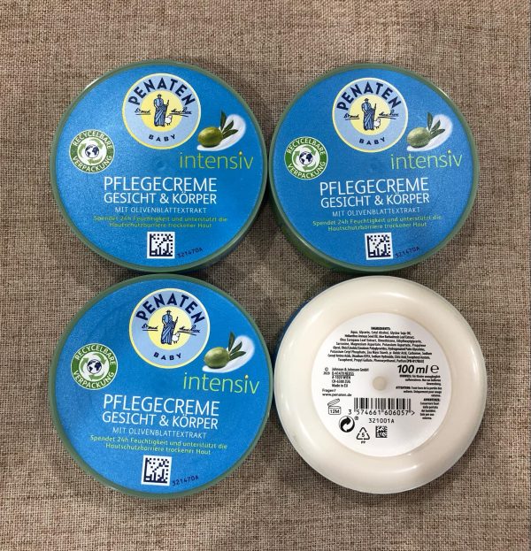 • Kem dưỡng da chuyên sâu Penaten với chiết xuất từ ​​lá ô liu cung cấp cho da độ ẩm chuyên sâu và hỗ trợ hàng rào bảo vệ da cho da khô