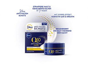 Kem dưỡng ban đêm NIVEA Q10 Anti-Wrinkle Power tái tạo làn da vào ban đêm và tăng cường sản xuất collagen* để có làn da săn chắc, đàn hồi và khỏe mạnh hơn. Nhờ công thức chứa Q10 và creatine giống da, kem dưỡng da mặt NIVEA đảm bảo làn da săn chắc hơn rõ rệt và giảm độ sâu nếp nhăn sau 1 tuần. Sau 4 tuần, độ sâu của nếp nhăn giảm đi rõ rệt và khi sử dụng sản phẩm chăm sóc da thường xuyên, độ sâu của nếp nhăn tiếp tục được cải thiện. Chăm sóc ban đêm chống nhăn NIVEA Q10 – làm săn chắc và tái tạo vào ban đêm.