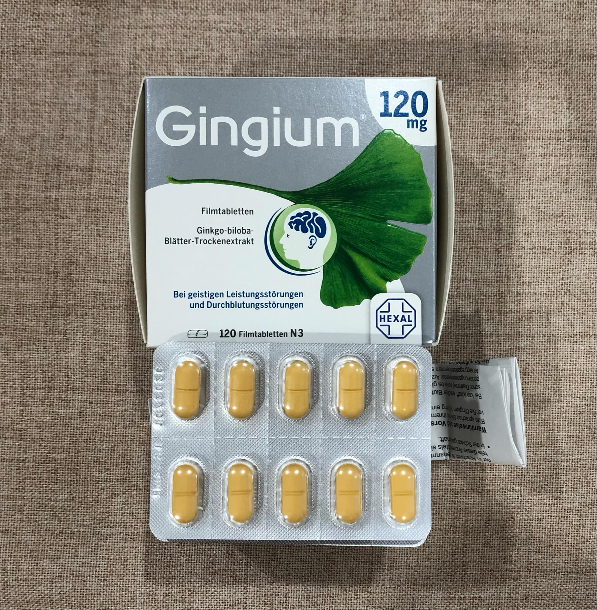 • 1 viên bao phim Gingium120 mg 1 – 2 lần mỗi ngày