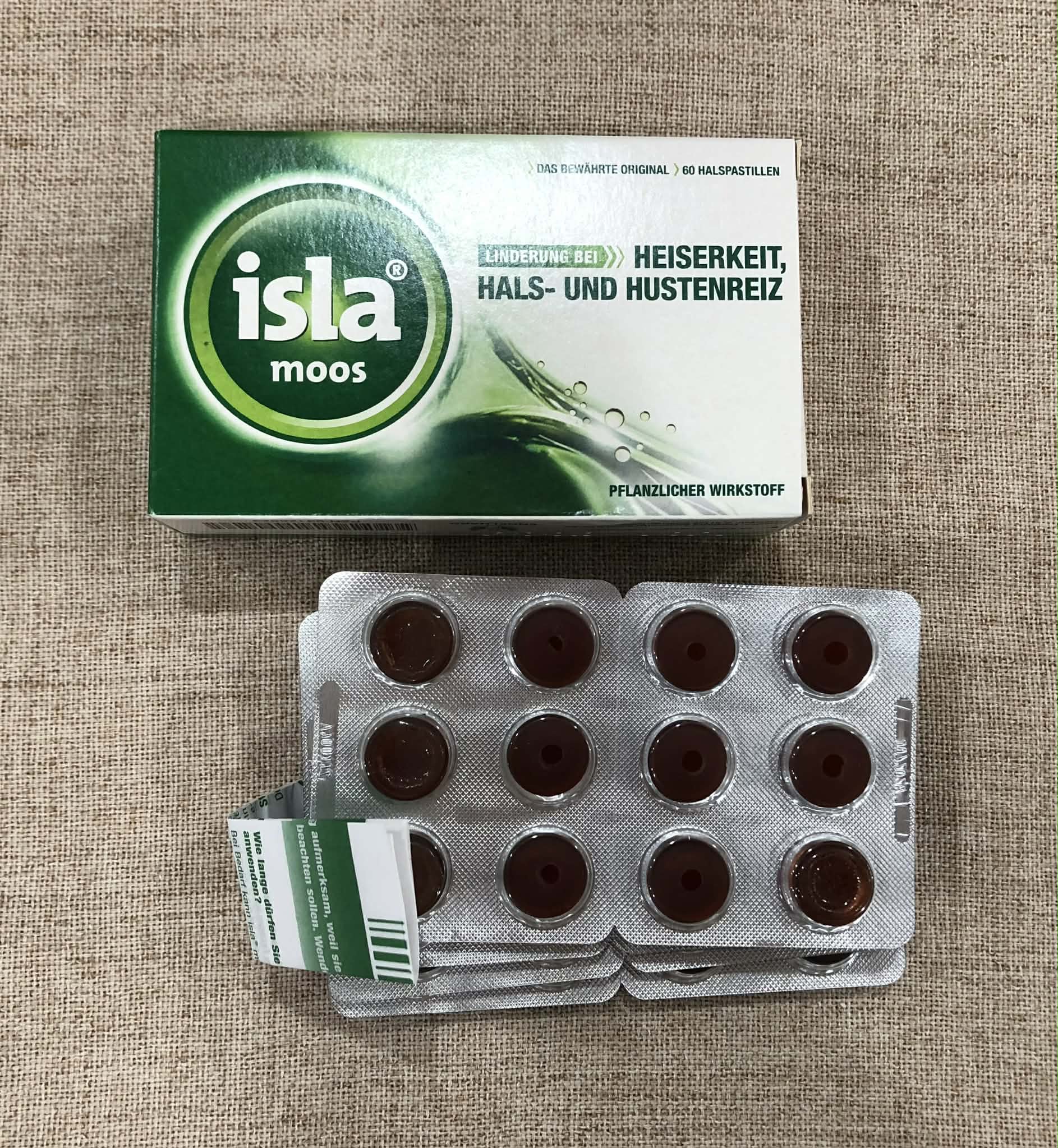 - Viên ngậm ISLA MOOS – với 100% rêu Iceland. Làm dịu cổ họng và hầu họng trong trường hợp ho ngứa họng, khàn giọng và căng giọng.