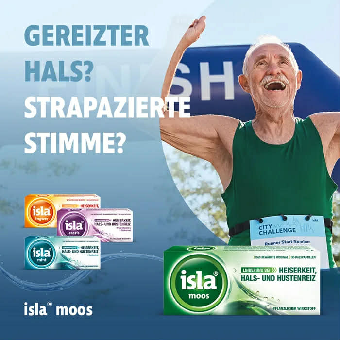 Chúng ta cần giọng nói mỗi ngày. Mất giọng nói đương nhiên là một cú sốc đối với mọi người, vì hình thức giao tiếp đơn giản nhất đột nhiên biến mất. Nhiều người dựa vào giọng nói của họ cho công việc và giải trí. Mất giọng nói cũng có thể đe dọa đến tính mạng. Không khí khô trong phòng có sưởi hoặc trong xe hơi có thể nhanh chóng gây kích ứng dây thanh quản. Do đó, việc giảm đau nhanh chóng và dễ chịu là rất cần thiết. Viên ngậm rêu isla® bao phủ màng nhầy của cổ họng và hầu họng như một loại thuốc mỡ. Điều này bảo vệ chúng khỏi bị kích ứng thêm, và tác dụng làm dịu cho phép màng nhầy bị kích ứng phục hồi nhanh hơn.