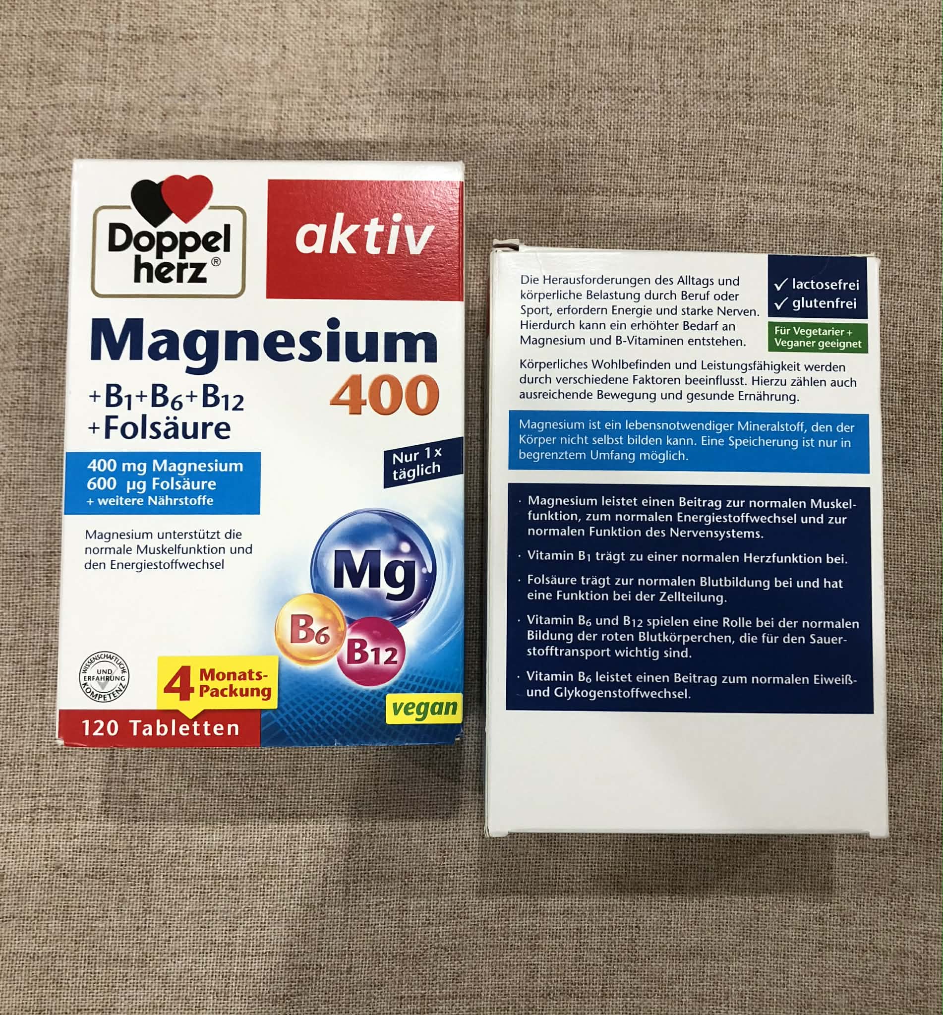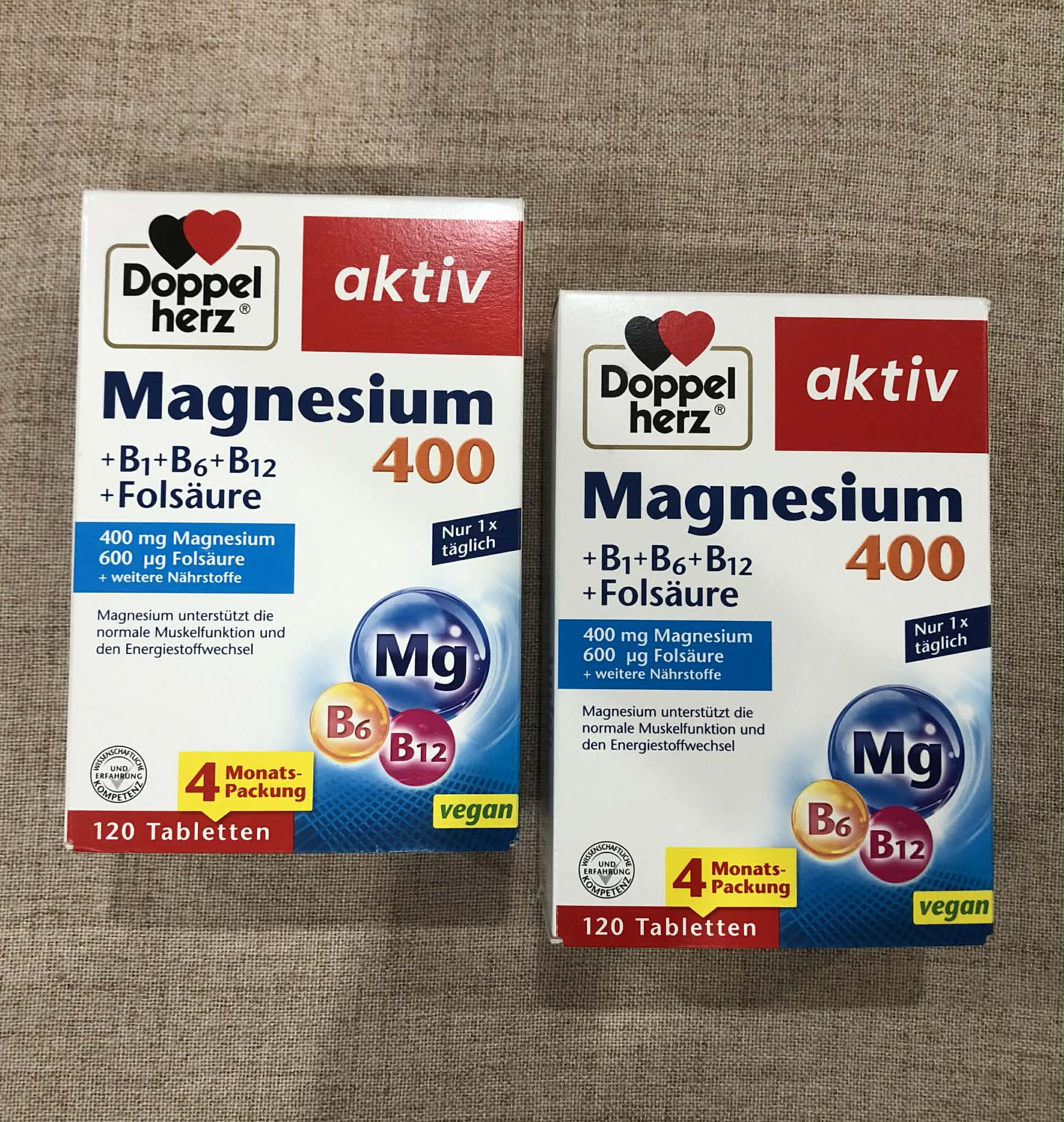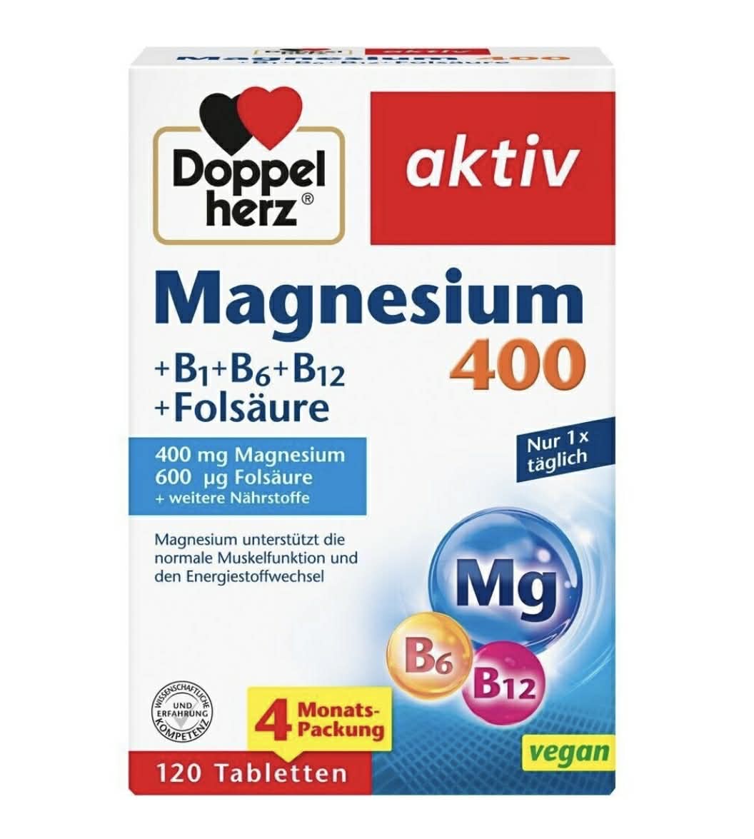 VIÊN UỐNG Doppelherz Magnesium 400 + B1 + B6 + B12 + Axit Folic – HỘP 120 viên